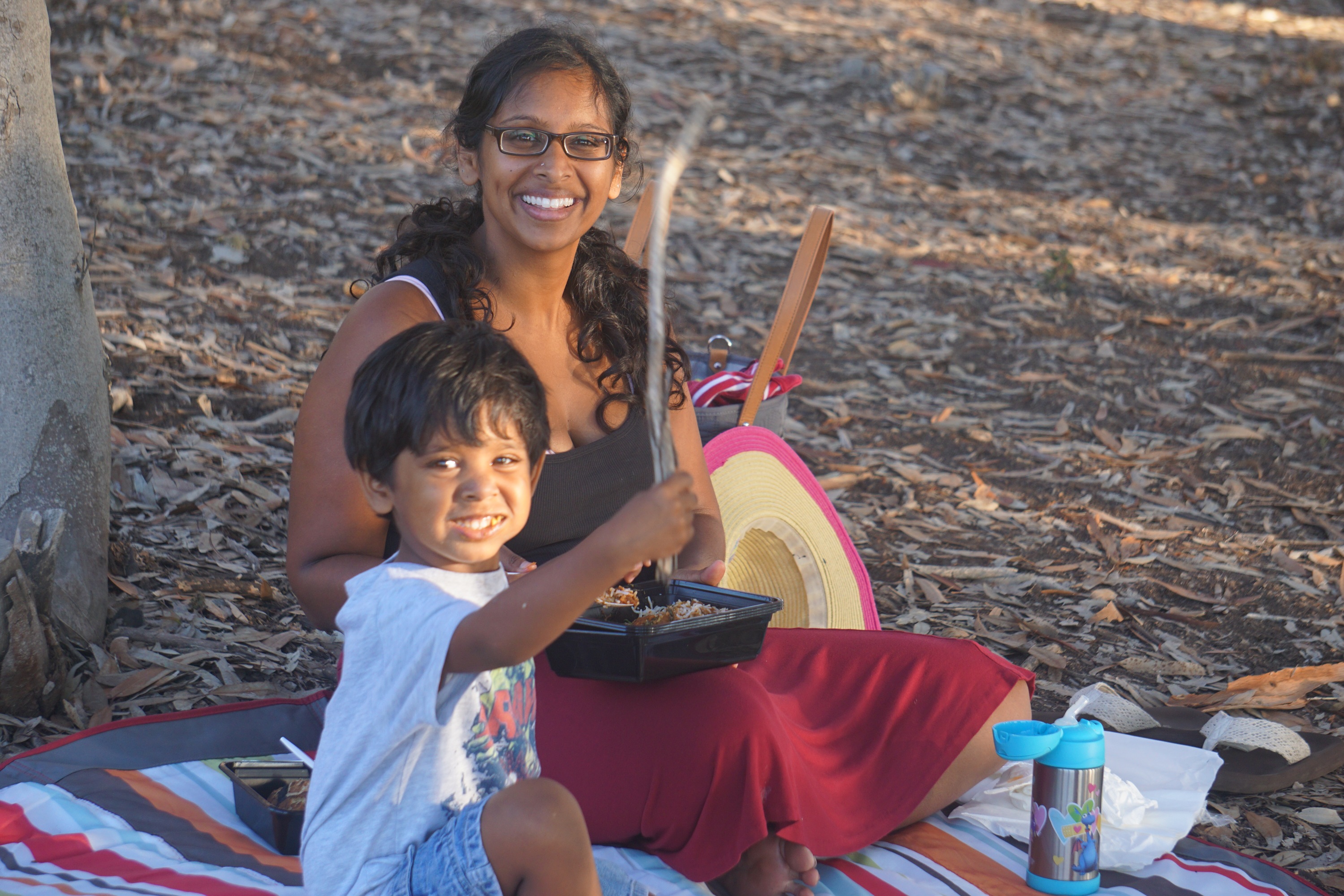 There was a wooded area where we sat down to eat our mediocre Indian food and through the clearing of the trees we could see the sunset.Not sure if Rosha will ever learn to focus properly with a camera…woe is me!