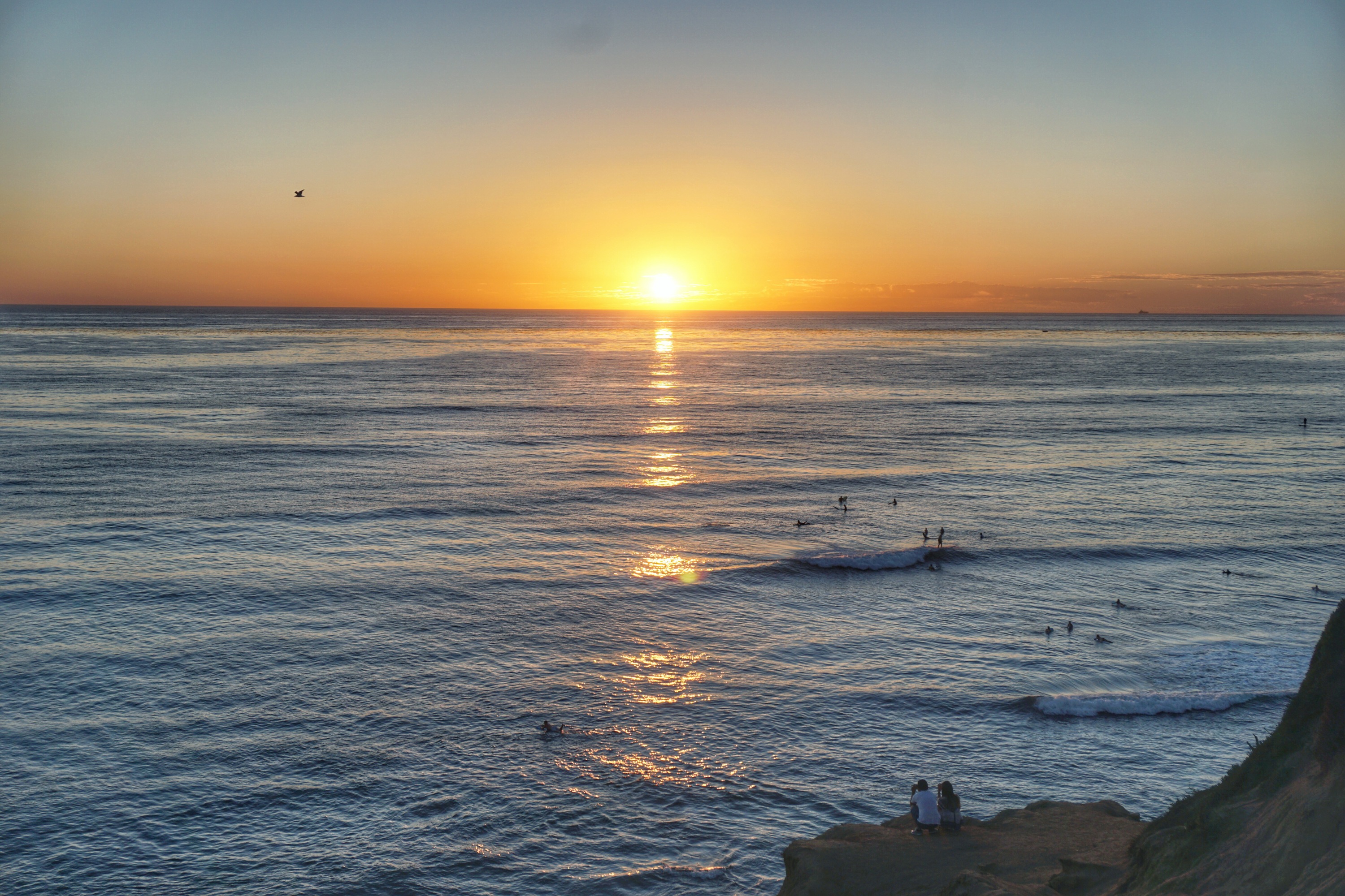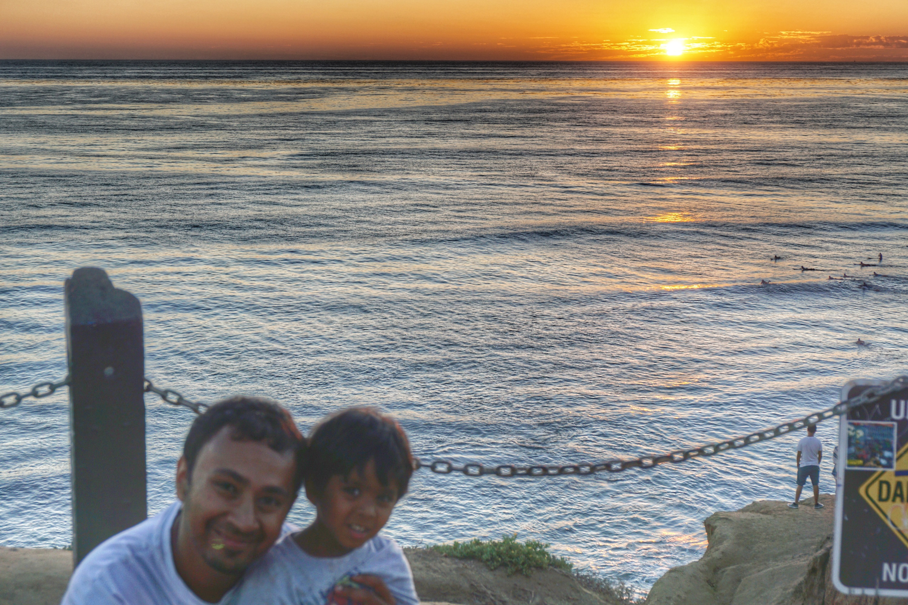 Well this was the big, hairy, white buffalo of “beaches” that the Hebsurs had yet to see in the greater San Diego area..it only took us 14 months to get here! We decided to grab take out Indian food from Sundara which is in Ocean Beach and head out to the Sunset Cliffs park and beach area. There isn’t much of a beach unless you are willing to climb down slippery sand stone and repelle the last few feet down. This sounds super easy and fun except when you have a 14 month and a 3.5 year old with you. In any case, we had a great time and saw a pretty nice sunset. I would rate this sunset up there with the great ones we’ve seen in this city. The weather is perfect, unlike in Mount Soledad….There is an unobstructed view and endless ocean unlike in the Cove..And I feel like there are less clouds and its a more direct look at the sun compared to Solana and Del Mar..In any case, all beaches have their charm and you can’t go wrong with any of them! Still my favorite will have to be the Scripps Institute beach.