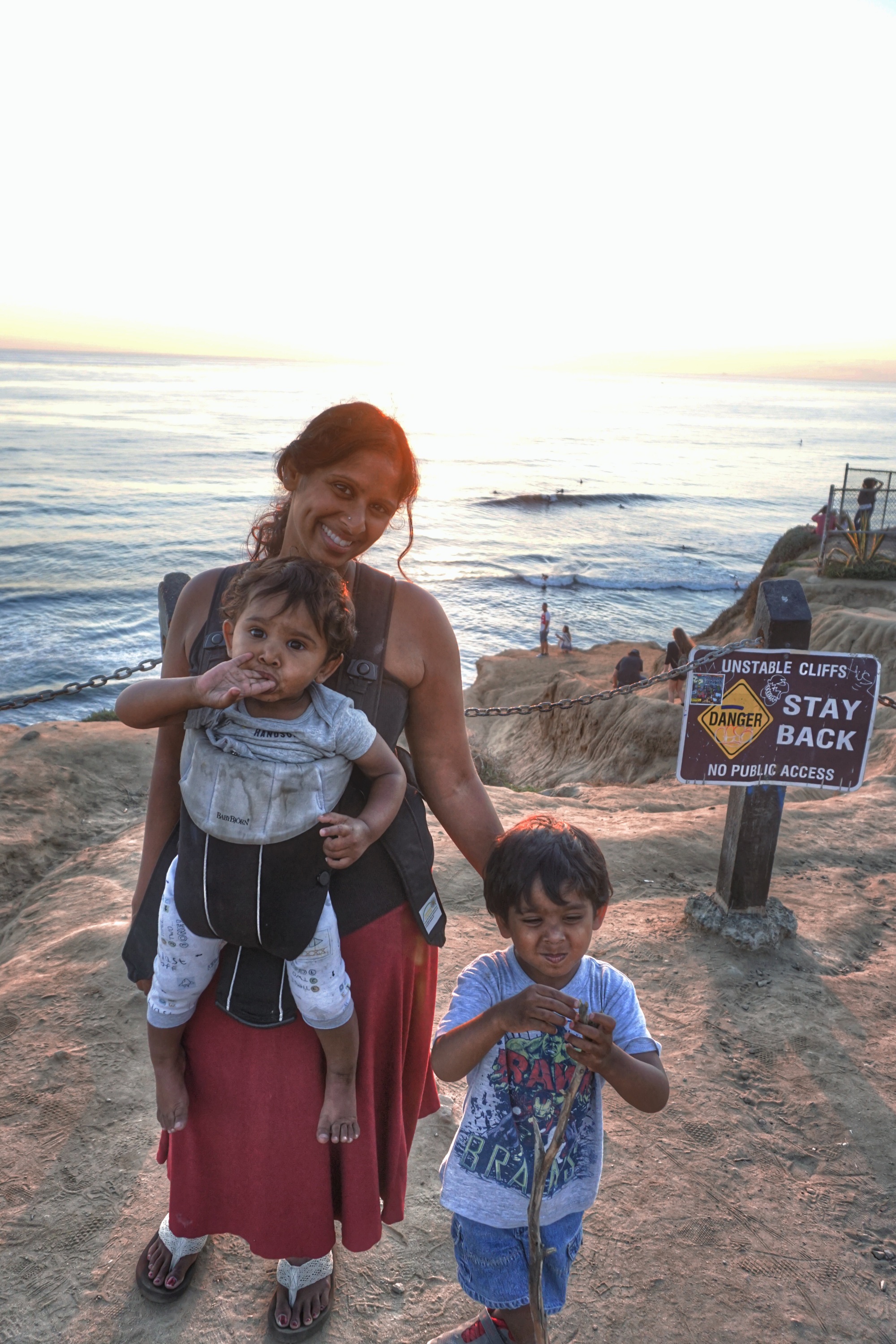 Eating food from Sundara. Not bad…not the best either. Arvind posing with his beloved stick..more of this laterPoor Keshav is now 15th percentile for weight…He refuses to eat, but I don’t think its because he’s depressed..Such a happy child!Arvind and his stick…see I told you it was coming! This is right by the parking lot of Sunset cliffs…I dont’ think we’ll go there too many more times as the drive back was long and slow because of traffic getting onto I-8.